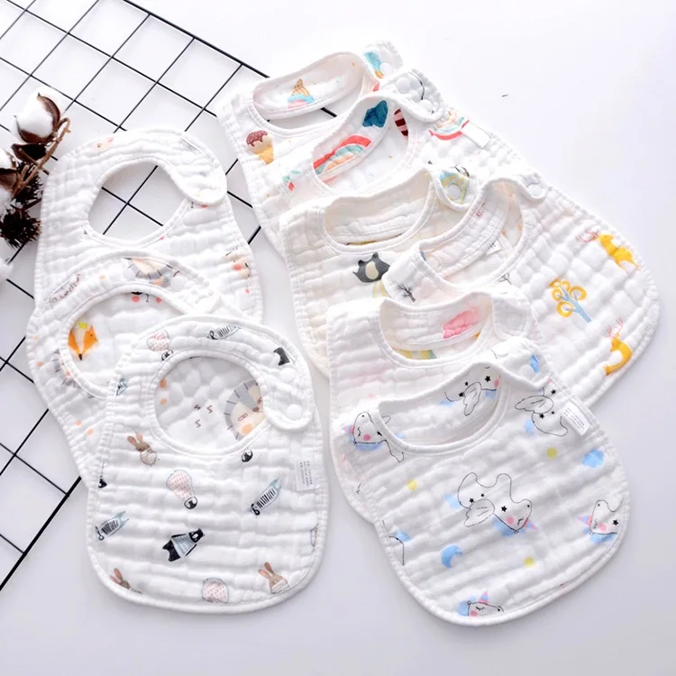 8-Layers Baby Bibs Gauze U-shaped Bib Cotton Print Saliva Towel Food Grade Organic Cotton Washable Baby Feeding Thickened Bib