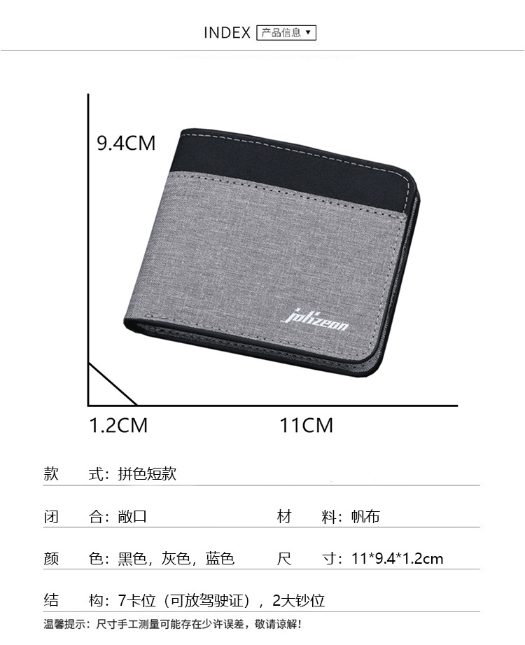 Men Fashion Canvas Wallet Short Purse Credit Card Case Bag Black/blue/gray Card Holder Wallet Male Money Bag 2023 bank Holder